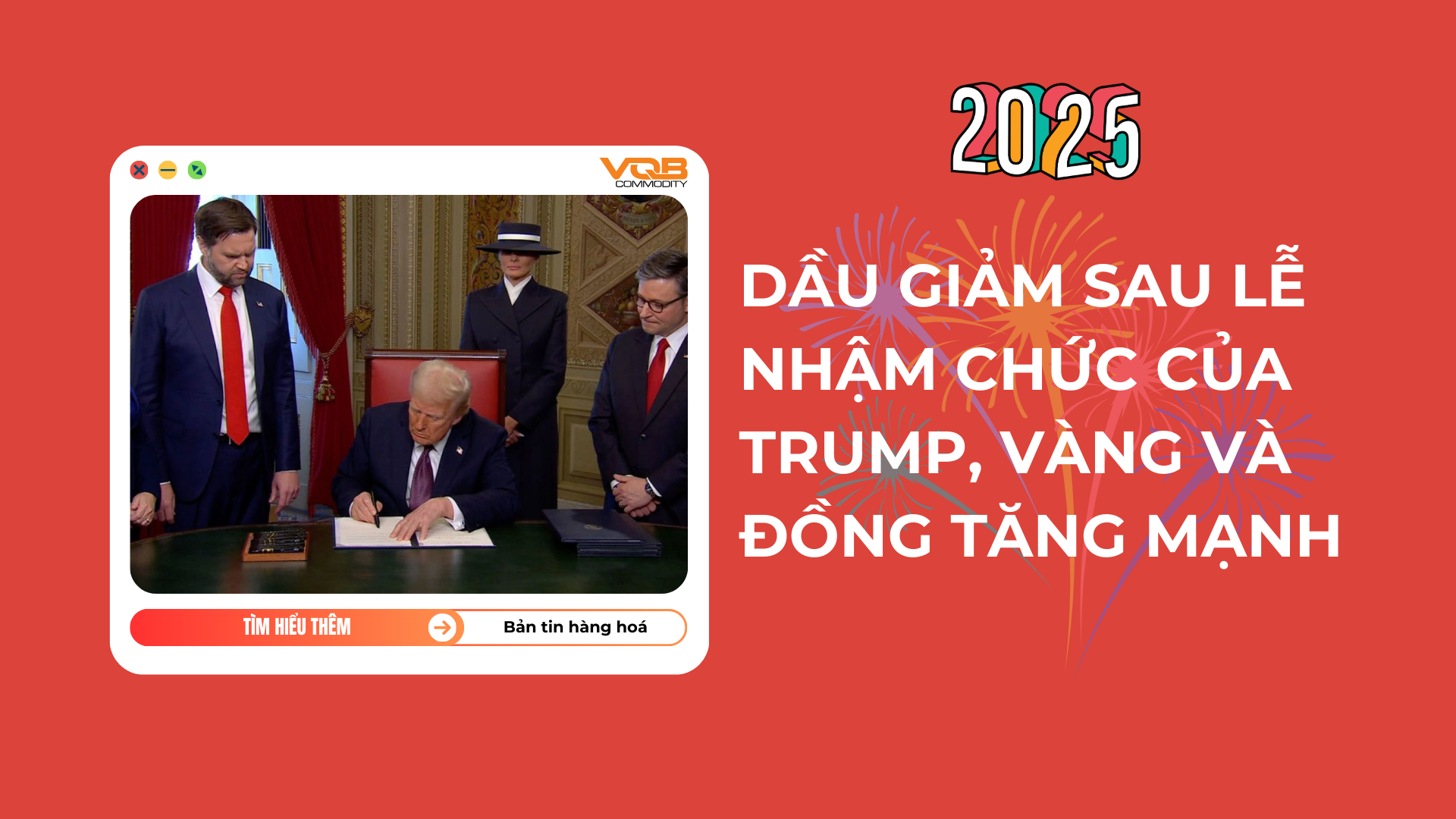 Thị trường hàng hóa thế giới ghi nhận diễn biến trái chiều trong phiên giao dịch đầu tuần sau lễ nhậm chức của Tổng thống Donald Trump, với dầu thô giảm giá trong khi vàng và đồng ghi nhận mức tăng ấn tượng.