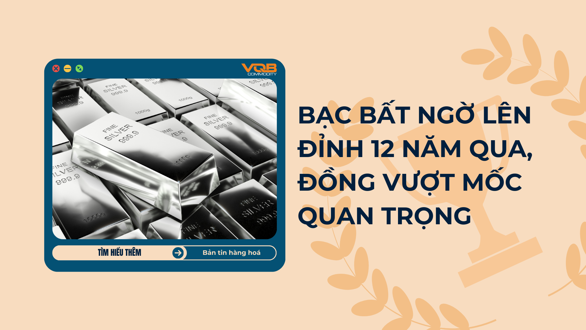 Bạc tỏa sáng, vàng tiếp tục lập đỉnh Giá bạc giao ngay tăng 0,6% lên 32,03 USD/ounce, chạm mức cao nhất kể từ tháng 12/2012. Kim loại quý này đã tăng hơn 35% từ đầu năm, được hỗ trợ bởi nhu cầu đầu tư an toàn và ứng dụng công nghiệp ngày càng tăng, đặc biệt trong lĩnh vực năng lượng mặt trời.