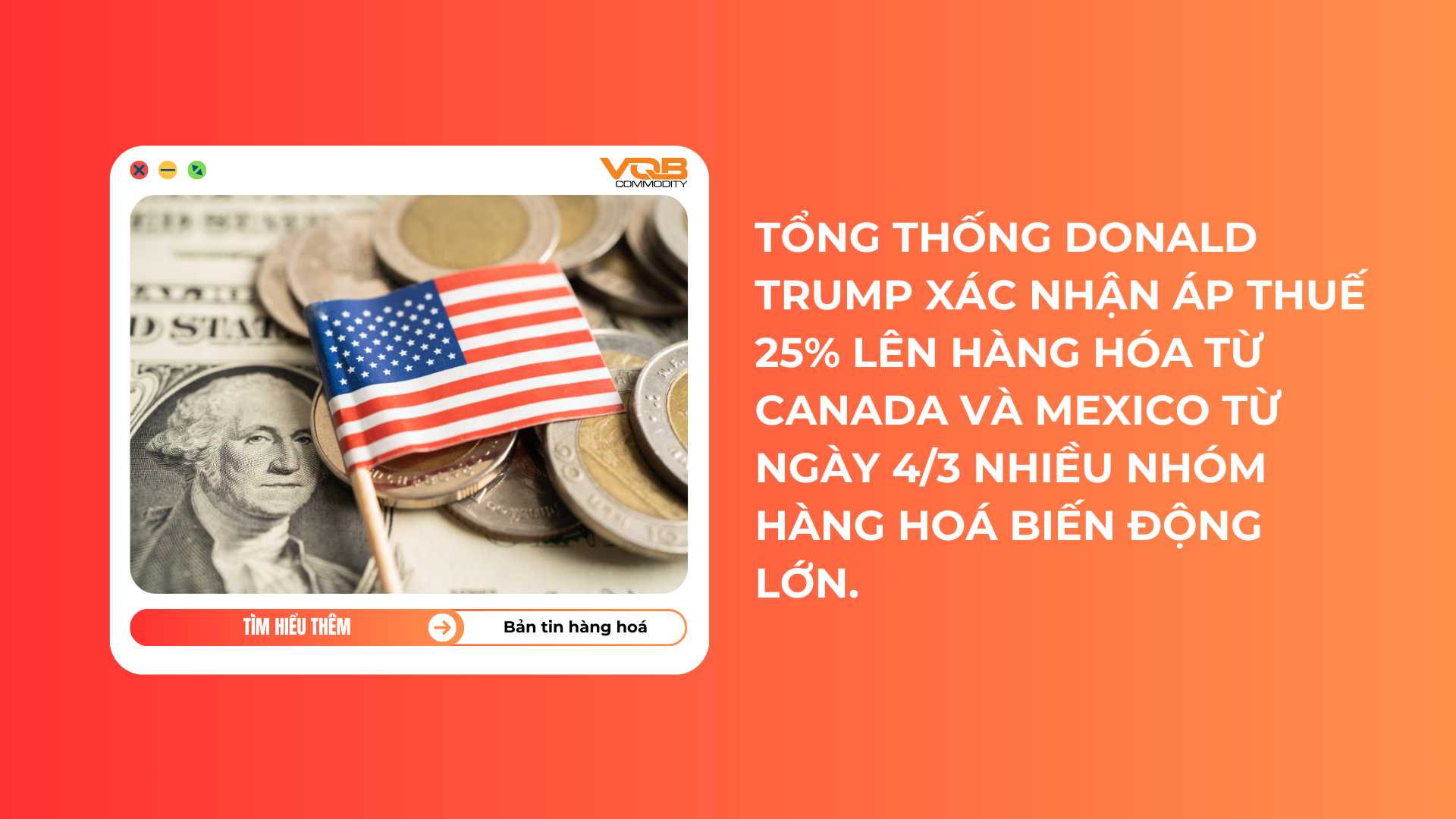 Thuế quan: Tổng thống Trump khẳng định thuế quan 25% với Canada và Mexico sẽ có hiệu lực từ 4/3, và có thể áp thuế 10% lên hàng Trung Quốc, 25% lên hàng EU từ 2/4.