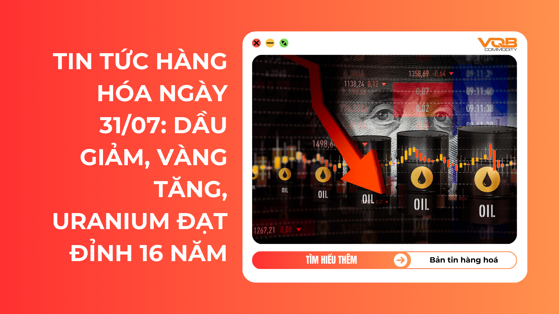 Kết luận: Thị trường hàng hóa đang trải qua giai đoạn biến động mạnh, với nhiều mặt hàng chủ chốt chịu áp lực giảm giá do lo ngại về nhu cầu từ Trung Quốc. Trong khi đó, vàng và uranium nổi bật với mức tăng ấn tượng. Nhà đầu tư đang chú ý theo dõi các diễn biến kinh tế tại Trung Quốc cũng như chính sách tiền tệ của Fed để đưa ra quyết định đầu tư phù hợp.