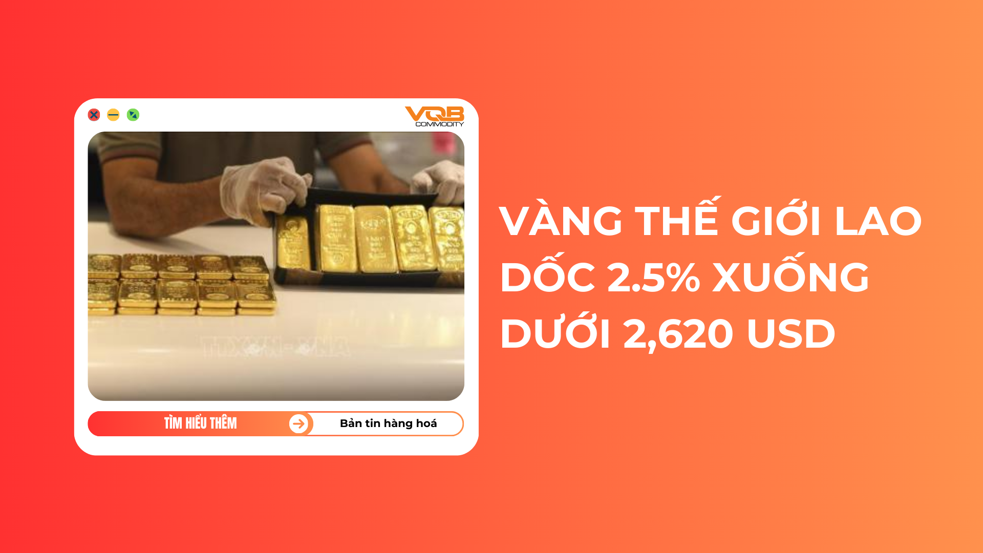 Vàng thế giới lao dốc 2.5% xuống dưới 2,620 USD