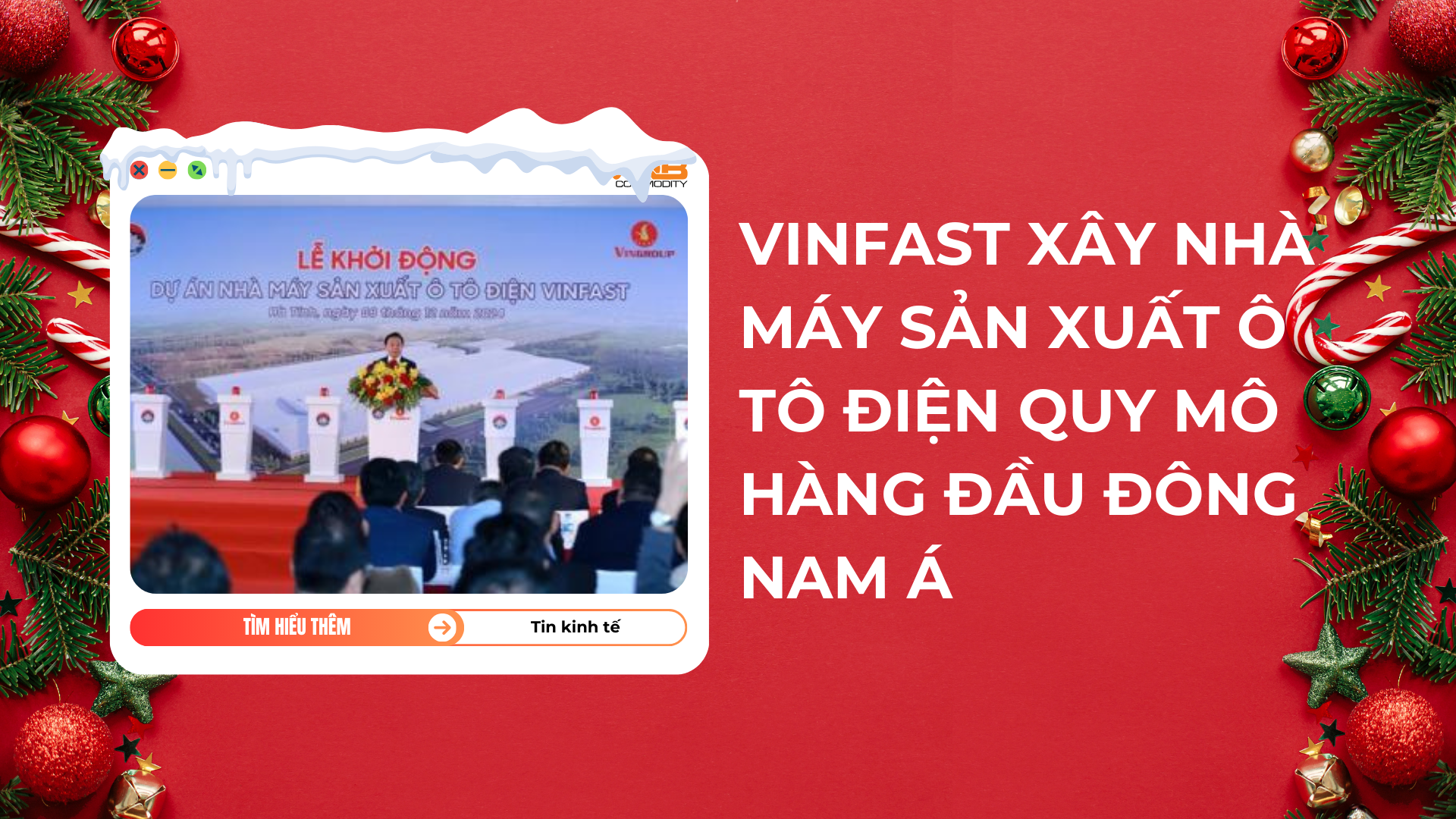 Sáng 08/12 đã diễn ra lễ khởi động dự án nhà máy sản xuất ô tô điện VinFast Hà Tĩnh tại khu kinh tế Vũng Áng, thuộc thị xã Kỳ Anh, tỉnh Hà Tĩnh với sự tham gia của Phó Thủ tướng Trần Hồng Hà, Bộ trưởng Bộ Kế hoạch và Đầu tư Nguyễn Chí Dũng, Bí thư Tỉnh ủy Hà Tĩnh Hoàng Trung Dũng.