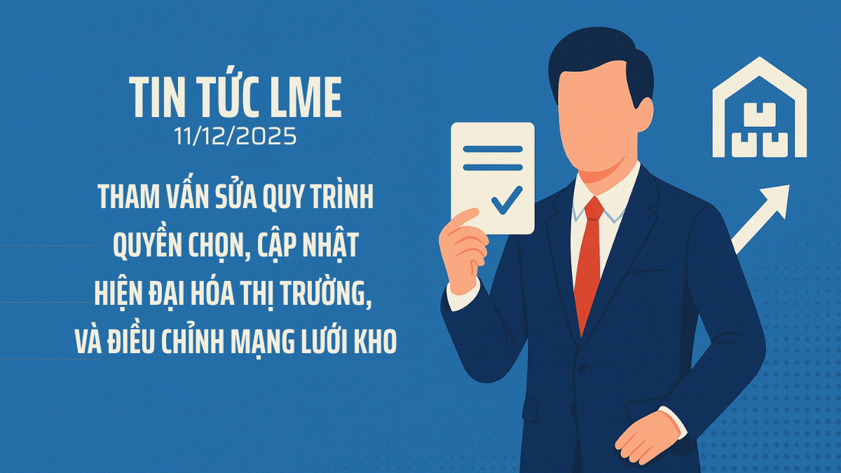 Ngày 11/12/2025 — Sàn Giao dịch Kim loại London (LME) và LME Clear công bố loạt thông báo quan trọng liên quan đến quy tắc giao dịch, hạ tầng kho và danh mục thương hiệu, cho thấy nhịp cải cách liên tục nhằm tăng minh bạch, củng cố thanh khoản và đảm bảo vận hành thông suốt.